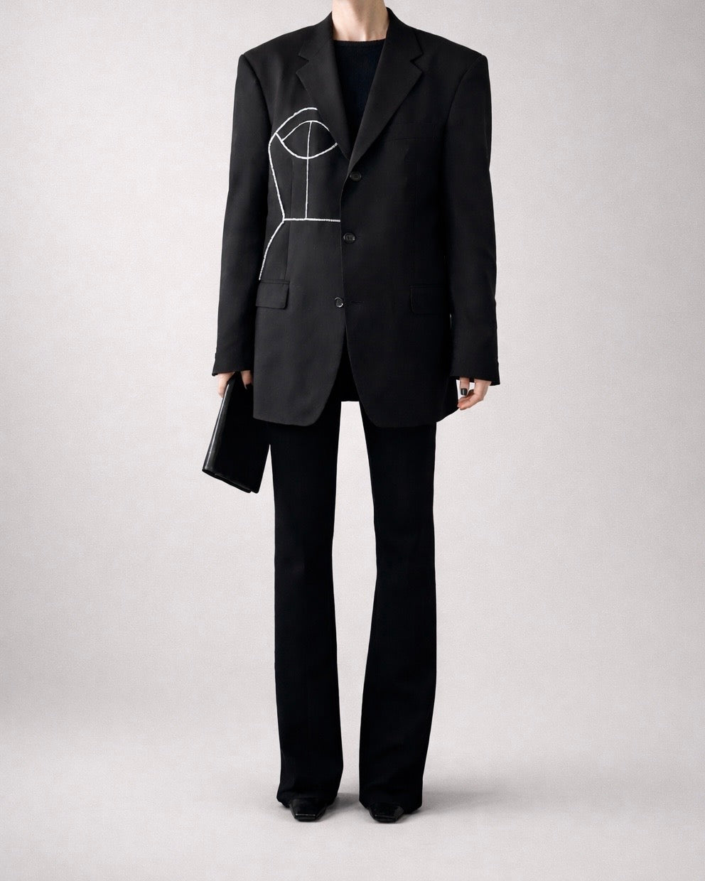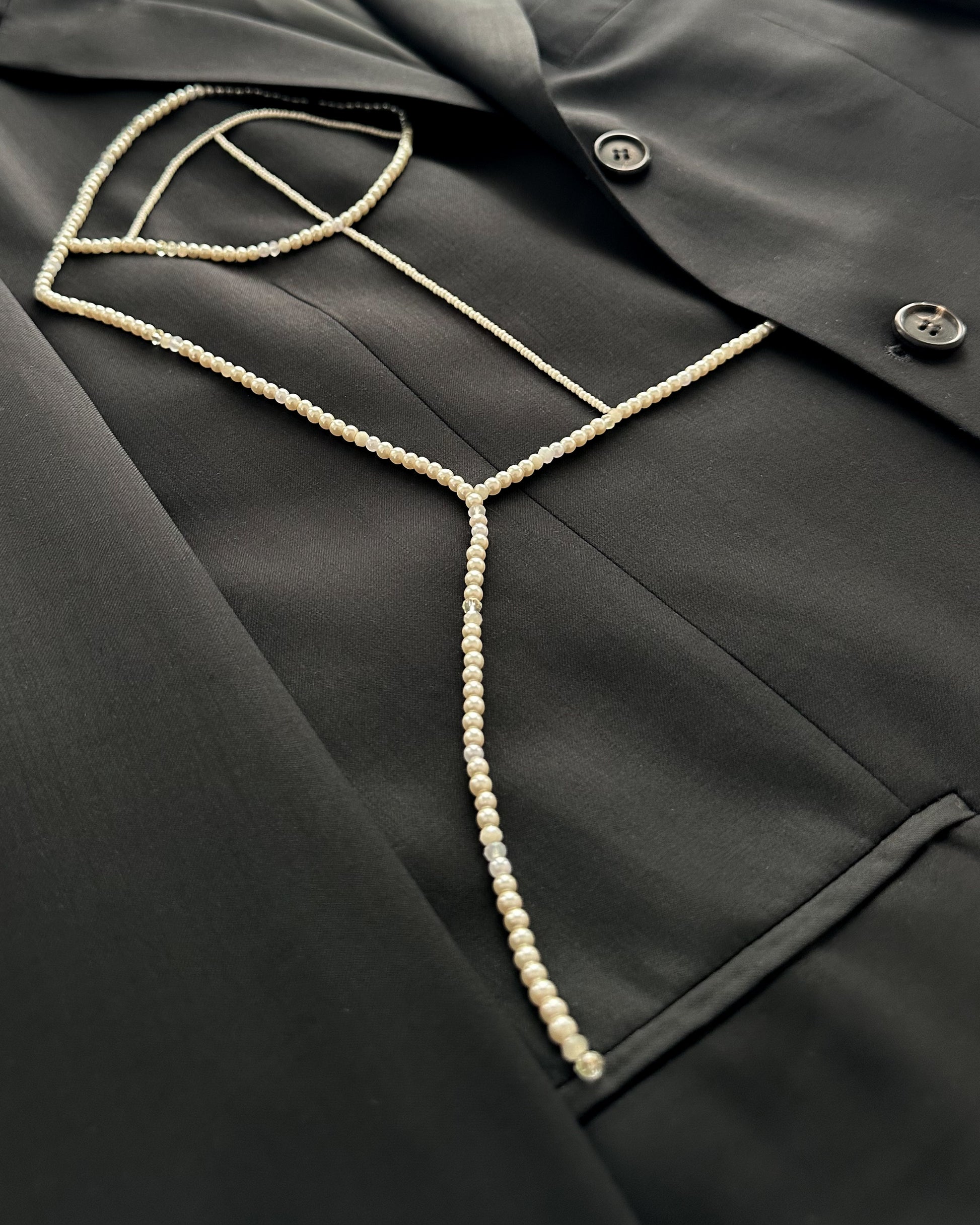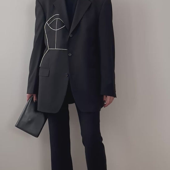 BLACK WOOL BLAZER WITH HAND-BEADED CORSET DESIGN