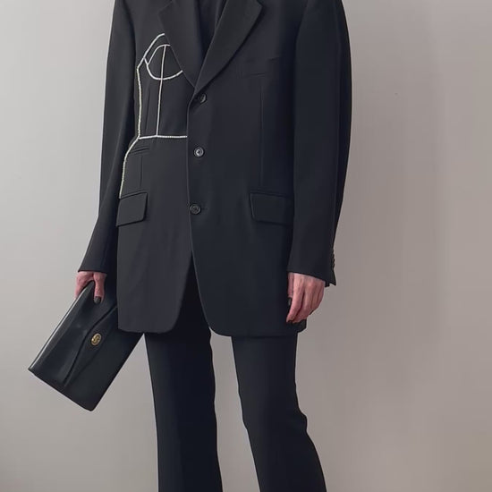 CORNELIANI BLACK MERINO WOOL BLAZER WITH HAND-BEADED CORSET DESIGN